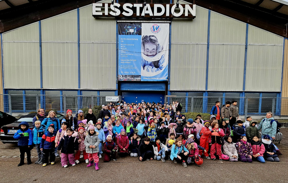 Auch dieses Jahr durften die Kinder der Grundschule einen Vormittag auf dem Eis verbringen. Begleitet von vielen Eltern machten sich die Klassen mit der Bahn auf den Weg nach Wernau ins Eisstadion. Mit viel Gelächter ging es auf das Eis. Einige Kinder waren das erste Mal dabei und starteten ganz vorsichtig, andere flitzten gleich los. Die Robben-Schlitten waren immer heiß begehrt und sorgten für viel Spaß. Vielen Dank an das freundliche Team der Eishalle Wernau, die uns diesen Ausflug durch den kostenlosen Eintritt ermöglichten. Und natürlich auch ein herzliches Dankeschön an alle Helfer/-innen, die unermüdlich Schuhe an-und auszogen, Kindern auf dem Eis, beim Vespern und natürlich während der Fahrt betreut haben. Martina Bandle